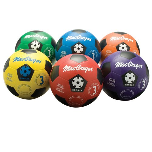 -. Binding : Misc. -. Brand : MacGregor -. Feature : Top quality rubber construction / Butyl bladder for superior strength and air retention / Available in a variety of sizes / Pack includes 6 balls - blue, green, orange, purple, red and yellow / Manufacturer provides 1-year limited warranty -. Label : Sport Supply Group Inc -. Manufacturer : Sport Supply Group Inc -. MPN : 94300 -. PackageQuantity : 1 -. PartNumber : 94300 -. ProductGroup : Sports -. ProductTypeName : SPORTING_GOODS -. Publisher : Sport Supply Group Inc -. Studio : Sport Supply Group Inc -. Title : MacGregor Multi-color Soccer P.R.Ism Pack