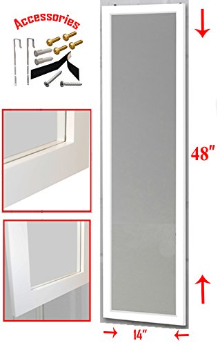 Over the Door Mirror / Wall Mirror (14” x 48”) – Full Length, White Wooden Furniture Frame (Hardware and Instructions Included)