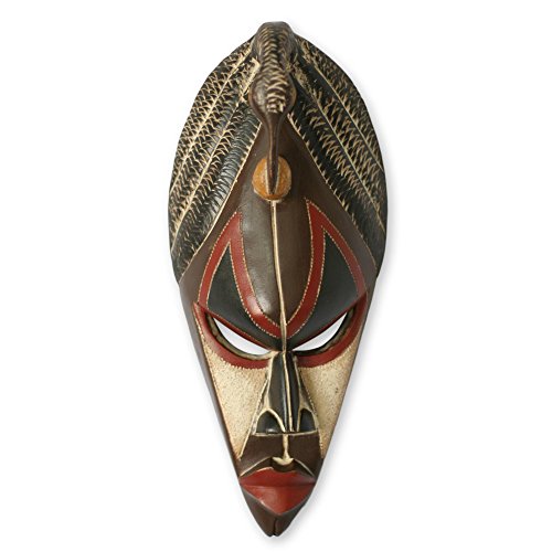 NOVICA Decorative Hausa Large Sese Wood Mask, Brown 'A Chief's Role'