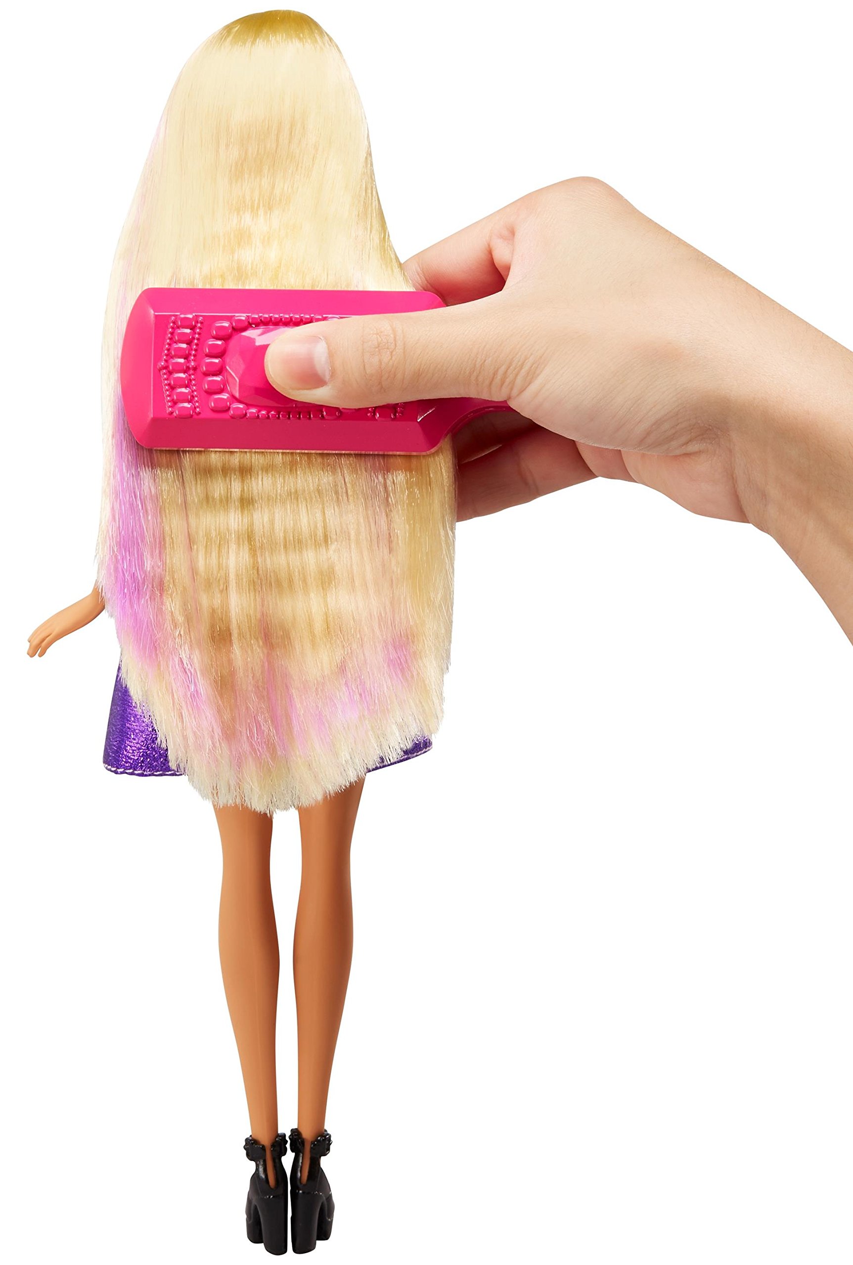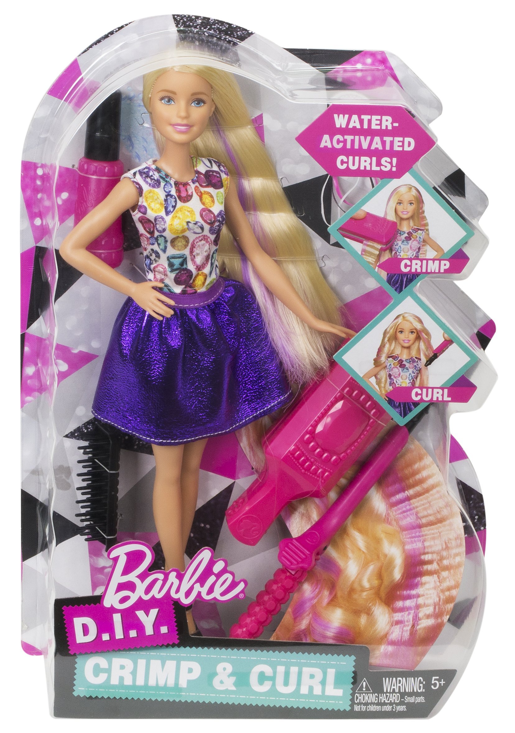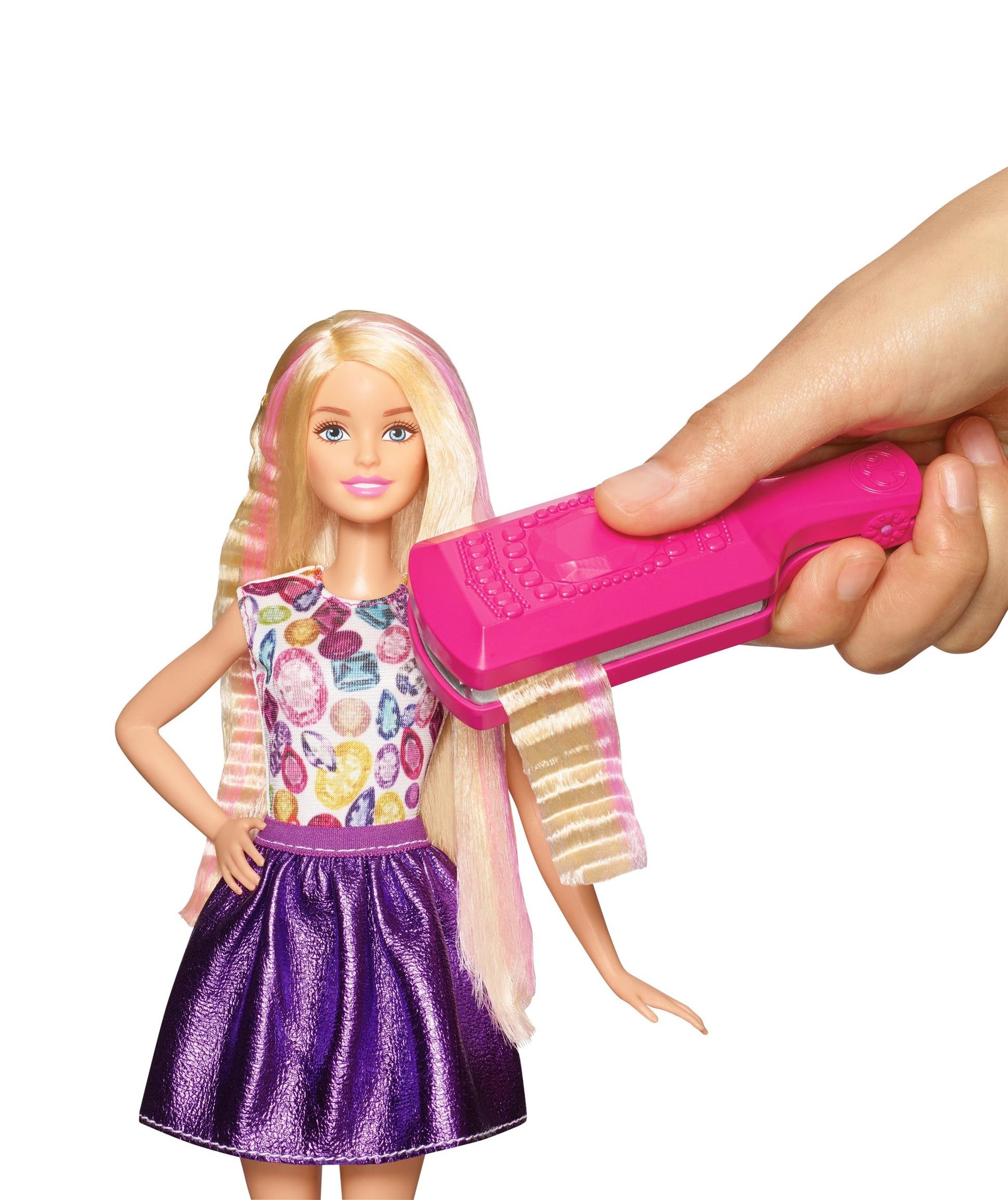 Let's change barbie's hairstyle freely Spray lukewarm water into your hair, use the curl stick and waffle stick to arrange the hair, let's try to arrange it again, brush again and your hair will return to straight