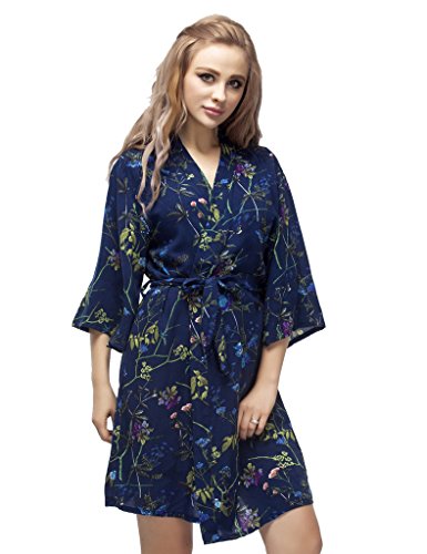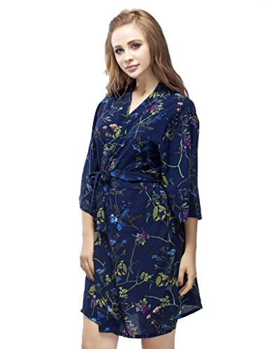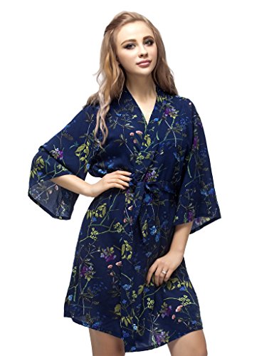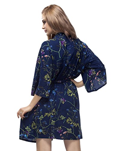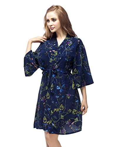 Skyfitting Women's Cotton Short Kimono Robe, Short Length Bridesmaid Robes Regular Size / 36" Length Royal Blue