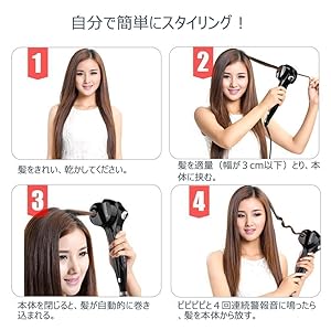 魔法の全自動巻き髪アイロン!髪を挟み、わずか8秒で、美しいカールが簡単に仕上がる!