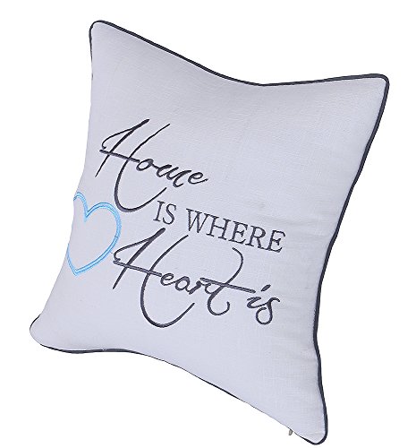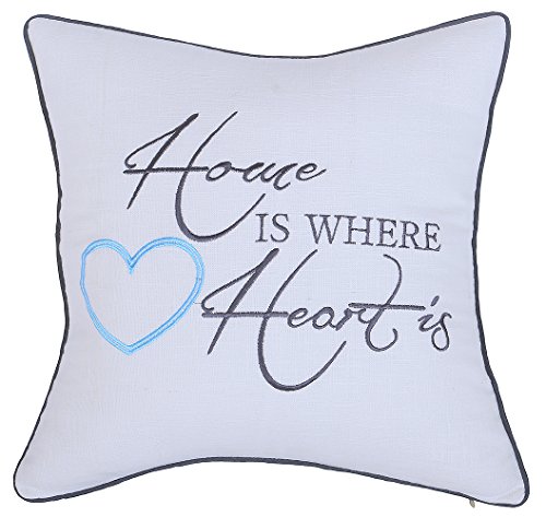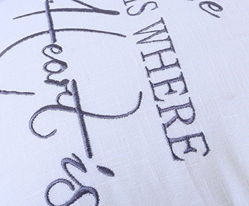 YugTex Pillowcases Home is Where Heart is Embroidered Throw Pillow covers for House Warming Wedding New Home GIfts Standard Decorative Cushion cover (18"x18"-Ivory)