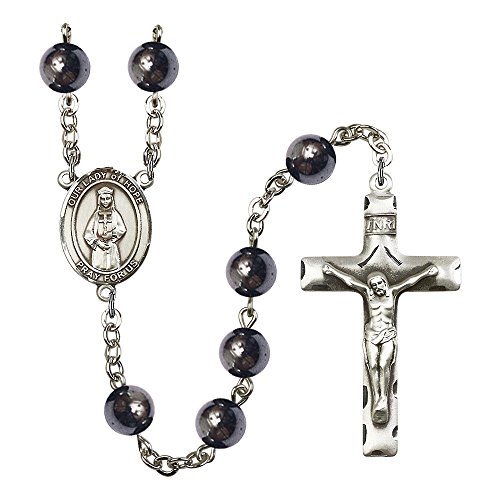 Silver-Plated Rosary 8mm Hematite Beads, Crucifix Size 1 3/4 x 1. Our Lady of Hope medal charm Each Rosary is presented in a deluxe velvet gift box. All Bliss products are 100% handmade in the United States at every stage of production, and come with a lifetime guarantee.