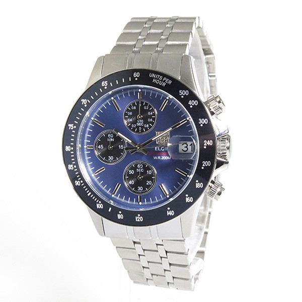 エルジン ELGIN クロノ クオーツ メンズ 腕時計 FK1408S-BLN ネイビー