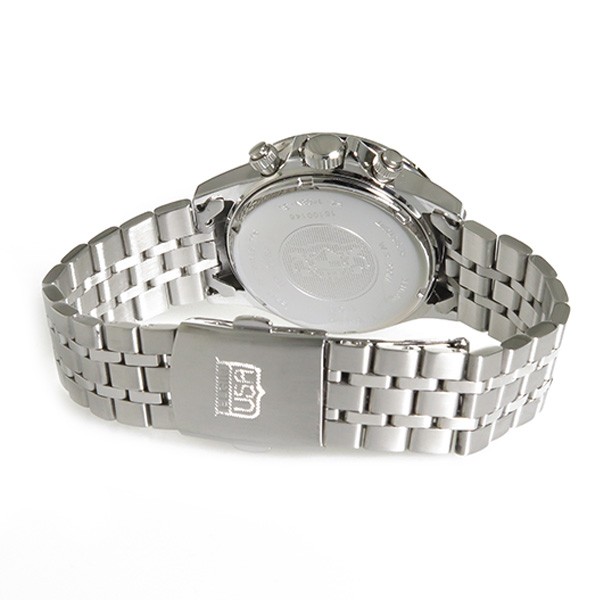 クオーツ、200m防水、クロノグラフ、カレンダー(日付)、カラー:ネイビー(文字盤)、シルバー(ベルト)