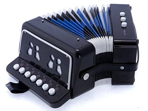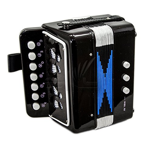 This adorable children's Accordion is ideal for toddlers and kids. This Child's Accordion features 7 treble buttons and 2 bass buttons. This toy Accordion makes a wonderful gift for that special child and is a great value for the money!The accordion projects a nice warm accordion sound that's sure to entertain!