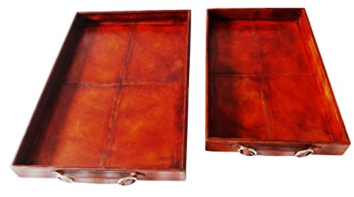 Deco 79 95044 Wood and Leather Trays (Set of 2), Red-Brown
