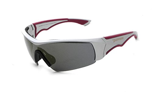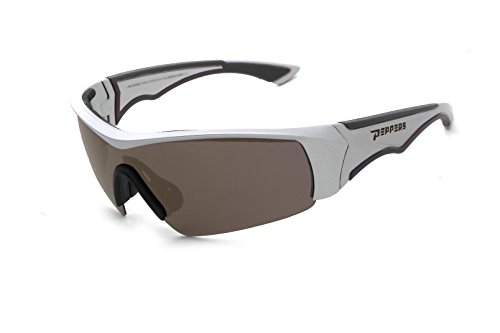 Studio : Peppers Publisher : Peppers Binding : Eyewear Product Description The Peppers Mako sunglasses are a great addition to your accessory collection. Their wraparound frame design gives them a distinct look. These half-rimmed sunglasses feature single lens that are connected over the nose bridge. Their nose pads offer adequate support for a snug fit. The sunglasses have tri-acetate, smoke lens with an inbuilt polyvinyl acetate feature for UV protection. 0