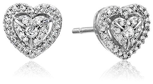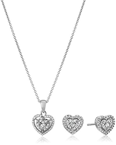 -. Title : Sterling Silver Diamond Heart Pendant Necklace and Earrings Box Set (1/2 cttw), 18"