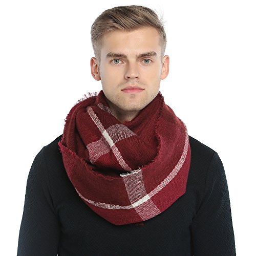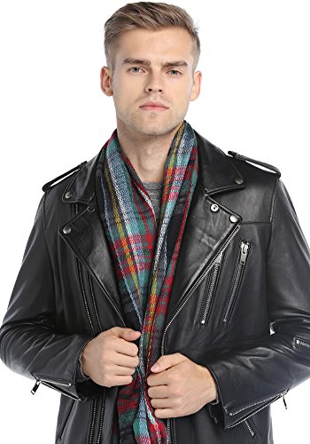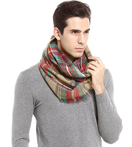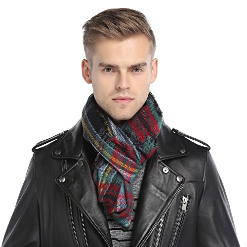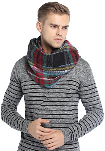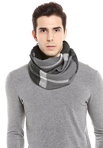 MissShorthair Soft Plaid Winter Scarf for Men Warm Tartan Infinity Blanket Scarves