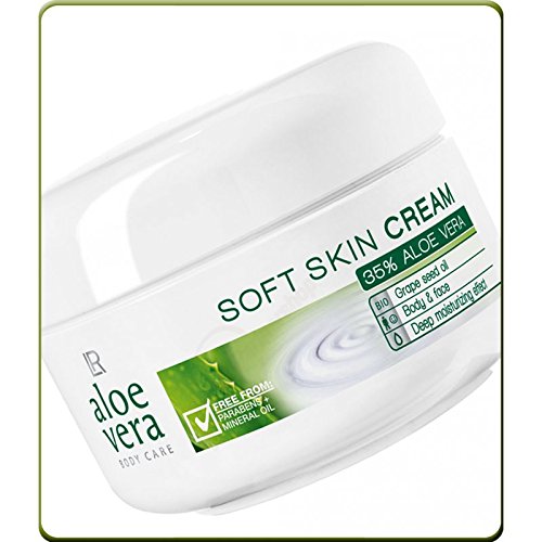 LR Aloe Vera Soft Skin Cream - Aloe Vera Soft Skin Cream LR absorbs quickly, also for children and the face. With 35% Aloe Vera. Fast-absorbing, easy care for delicate skin Rich and soft care for particularly dry demanding skin. Grape seed oil provides a pleasant skin experience Quick absorbing and non-oily Nourishes the face and body. Apply as needed both mornings and/or evenings to the face and other dry demanding areas. Promotes skin with moisture and supports your natural protective function. Absorbing quickly, gives a pleasantly smooth skin feeling. Contents: 100 ml 3.4 FL.OZ.)Feature