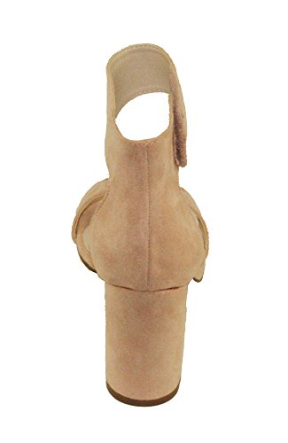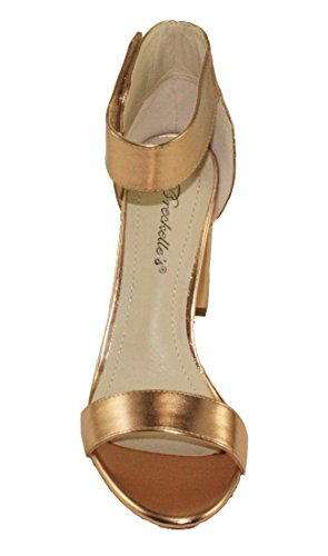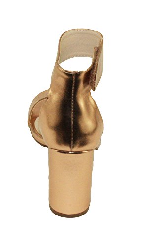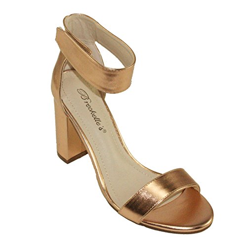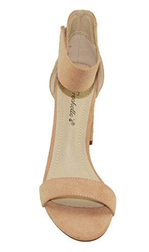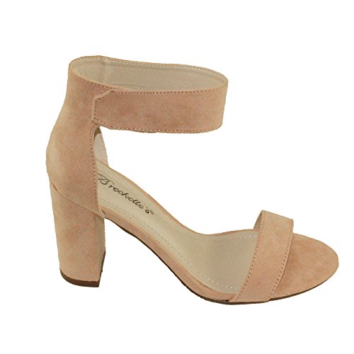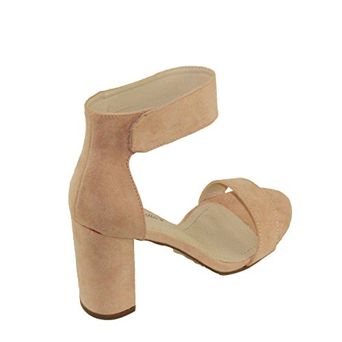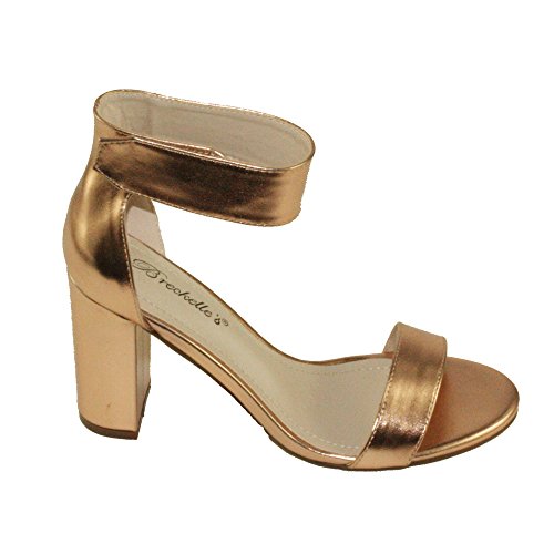 Product Descriptionwomen's heeled sandals, round block heels, adjustable ankle cuff with Velcro closure, lightly padded insole, Blush color come in faux suede upper, Rose Gold color come in PU material upper.0