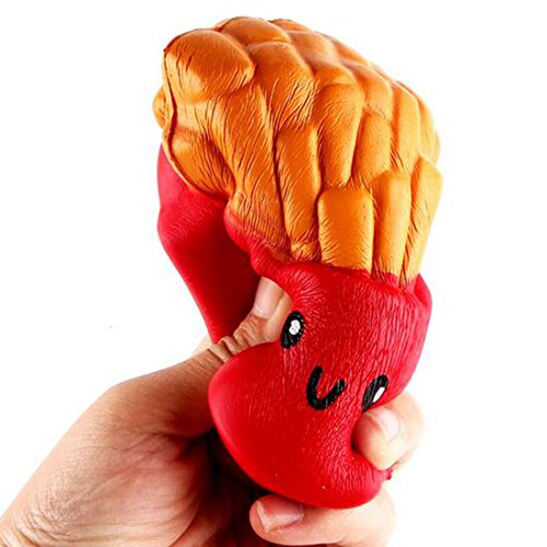 Package included: Pack of 3 Cute Squishies toys(1*Cat Hamburger, 1*Fries and 1*Ice Cream), colors and expressions are sent randomly. Size: Cat Hamburger: 3.9x3.2 Inches, Fries: 4.3x3.1 Inches, Ice Cream: 7.5x4.3 Inches, Material: Elastic Environmentally PU, friendly.