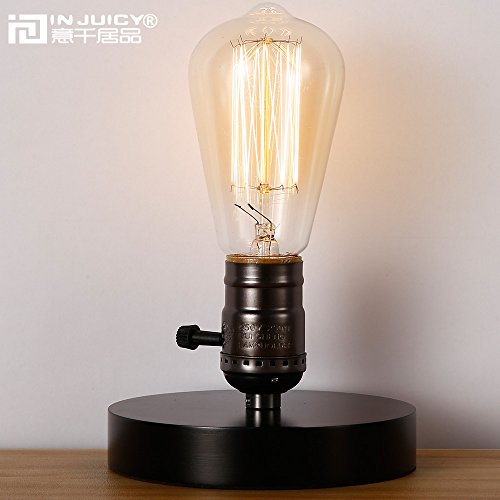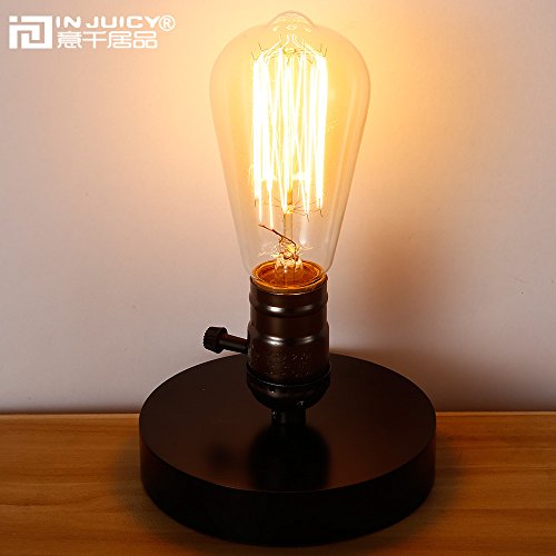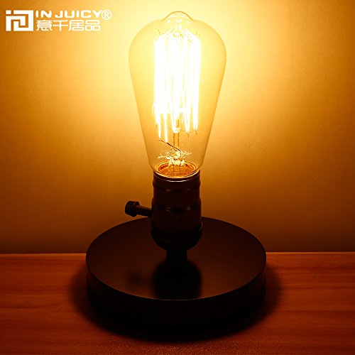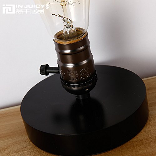 Injuicy Loft Retro Industrial E27 Edison Wooden Base Table Lights Vintage Antique Wood Led Desk Accent Lamp for Bedside Bedroom Living Dining Room Home Corridor with Switch (Black)