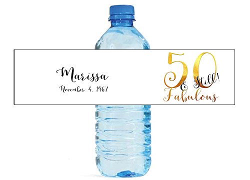 100 Count 50 and Still Fabulous Birthday water bottle labels Golden 50