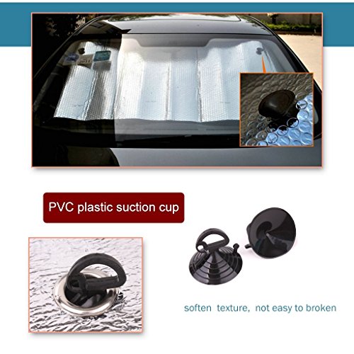 ✓Premium double bubble,windshield sunshade silver black.Folds for quick and easy storage. Features a built-On storage strap. With suction cup attached, easy to operate and no harm to the window of your car.