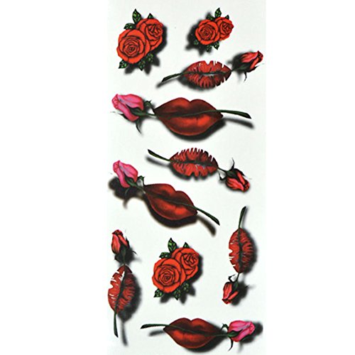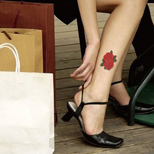 TAFLY Leg Tattoos Red Rose Body Waterproof Temporary Tattoos Stickers 5 Sheets
