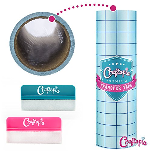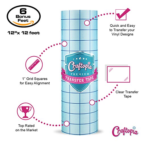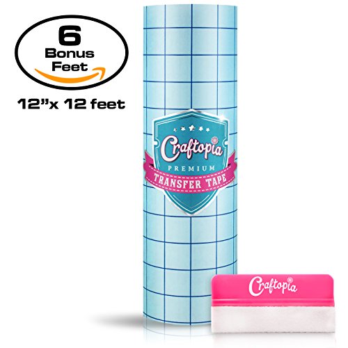 Transfer Paper Tape Roll 12" x 12 FT CLEAR w/ Blue Alignment Grid | Application Tape Perfect for Cricut Cameo Self Adhesive Vinyl for Signs Stickers Decals Walls Doors & Windows | Medium Tack