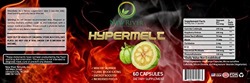 -. Binding : Health and Beauty -. Brand : New River Naturals -. Color : White Bottle -. EAN : 0741459713263 -. Feature : HyperMelt - Natural Fat Burner Weight Loss Supplement - Max Fat Burner - Curbs Mood Eating - Energy Booster - Increased Focus - Garcinia Cambogia - Raspberry Ketones - Green Tea - B12 -. IsAdultProduct : 0 -. Label : New River Naturals -. LegalDisclaimer : These statements have not been evaluated by the FDA. This product is not intended to diagnose, treat, cure or prevent any disease. Individual weight loss results will vary. This product is not for use by or sale to persons under the age of 18. This product should be used only as directed on the label. It should not be used if you are pregnant or nursing. Consult with a physician before use if you have a serious medical condition or use prescription medications. A Doctor's advice should be sought before using this and any supplemental dietary product. Individual weight loss results will vary. -. Manufacturer : New River Naturals -. MPN : 741459713263 -. PackageQuantity : 2 -. PartNumber : 741459713263 -. ProductGroup : Health and Beauty -. ProductTypeName : HEALTH_PERSONAL_CARE -. Publisher : New River Naturals -. Studio : New River Naturals -. Title : HyperMelt **2-Pack** Natural Fat Burner Weight Loss Supplement - Max Fat Burner - Curbs Mood Eating - Energy Booster - Increased Focus - Garcinia Cambogia - Raspberry Ketones - Green Tea - B12 -. UPC : 741459713263