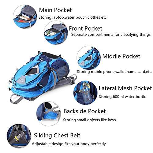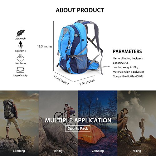 Product Feature: Breathable mesh shoulder straps, bottle holder on the both sides and breathable back pad. Water-repellent and tear-resistant Nylon Material. It will be a fantastic necessity for not matter outdoor sports or leisure activities in or out of the city. Convenient for hiking,traveling,camping,running,cycling,mountaineering. Adjustable shoulder strap and waist strap to fit your need.