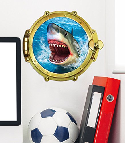Walls 360 Peel & Stick Wall Decal Window Views Shark (12 in x 10.75 in)