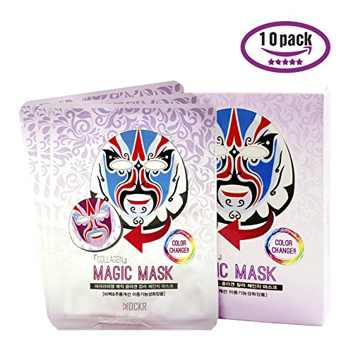 -. Feature : Smooth and Elastic Dual Function Skin Care Provided by Marine Collagen and Plant Collagen / Deep Moisturizing by Rich Essence - Applying on Face Smoothly with Outstanding Skin Care / Harmless Mask Sheet - 100% Pure Cotton Mask Sheet (70% of Bamboo Extracts and 30% of Viscose Rayon) / Enjoyable Pattern Color Changes by Skin Temperature - Changes Over 77℉ / 25℃ / Made in Korea - Collagen magic mask 1set (10pcs x 25ml)