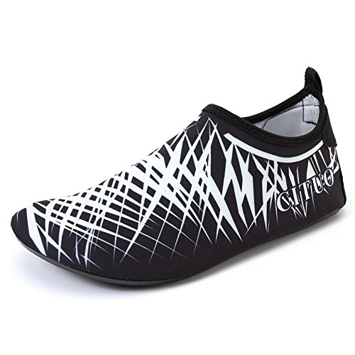 -. Feature : Breathable and stretchy upper offer you with comfortable, fast-drying protection / The rubber soles, with a really comfortable and thick foam arch-support insert inside of them, are flexible yet thick enough to protect your feet from stepping on rock and stone. / Like socks, super lightweight and flexible, make you feel great freedom and comfortable in wearing. / Smooth neck design prevents chafing when wearing our water shoes. It is convenient to wear and take off. / Beach, swimming, pool, weight training, wake-boarding, sailing, boating, kayaking, windsurfing, cycling, jogging, walking, fishing, beach volleyball, gardening, lawn, car-washing and driving. Especially for family outings!