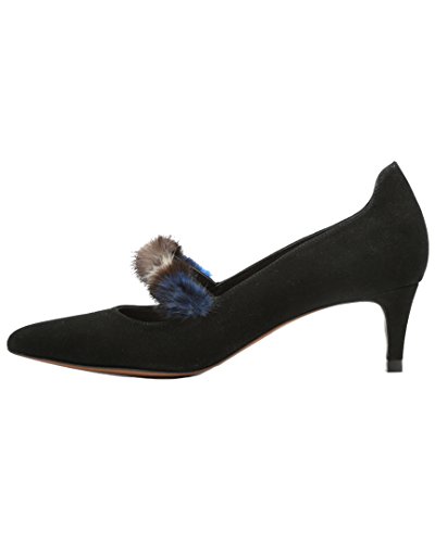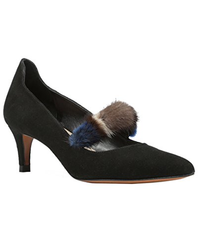 Studio : Donald Pliner Publisher : Donald Pliner Binding : Apparel Product Description Color/material: black kid suede and mink fur. Lightly padded leather insole. Buffed leather sole. 1.7in heel. Please note: All measurements are approximate and were taken from a size 6M; slight variations may occur.. Made in Spain 0