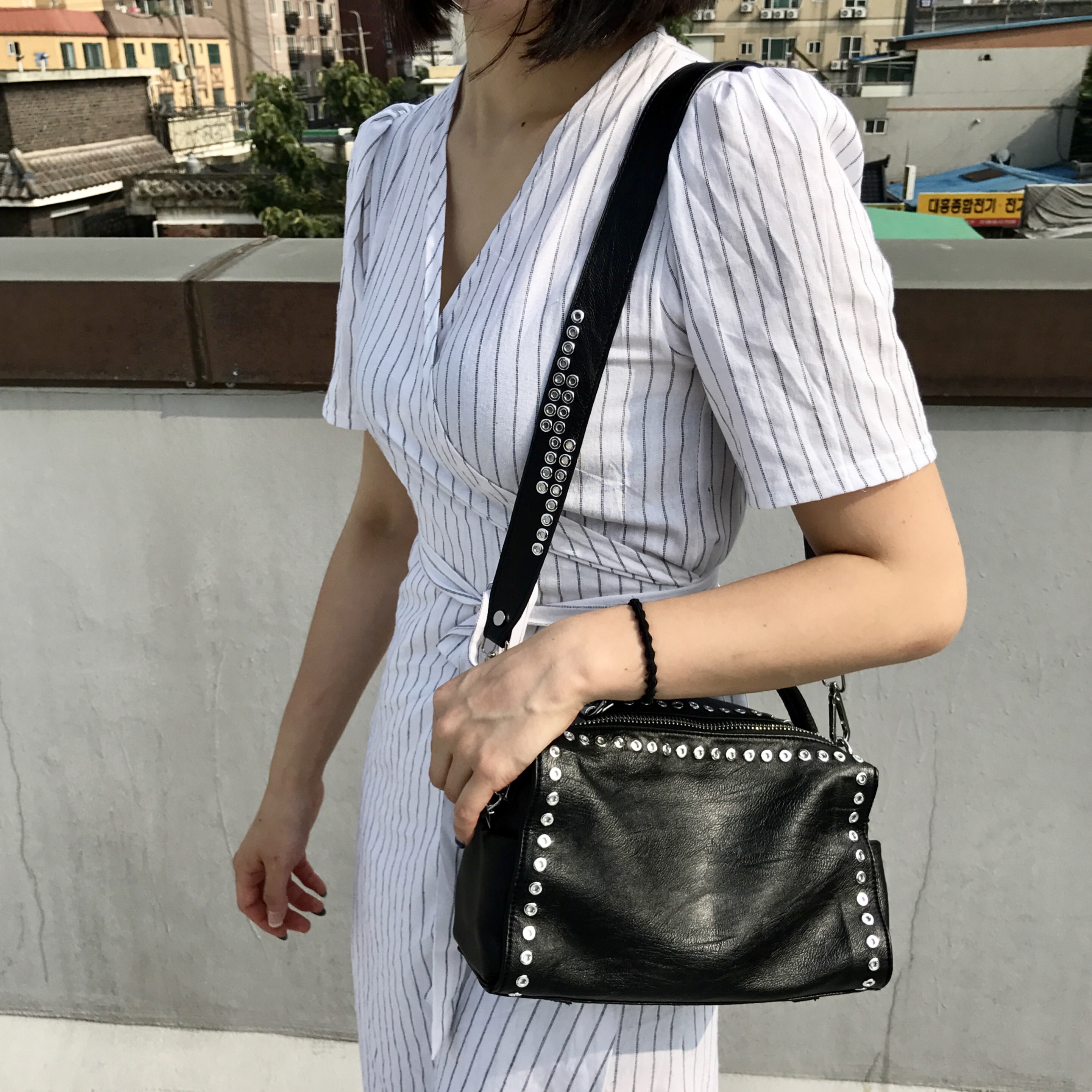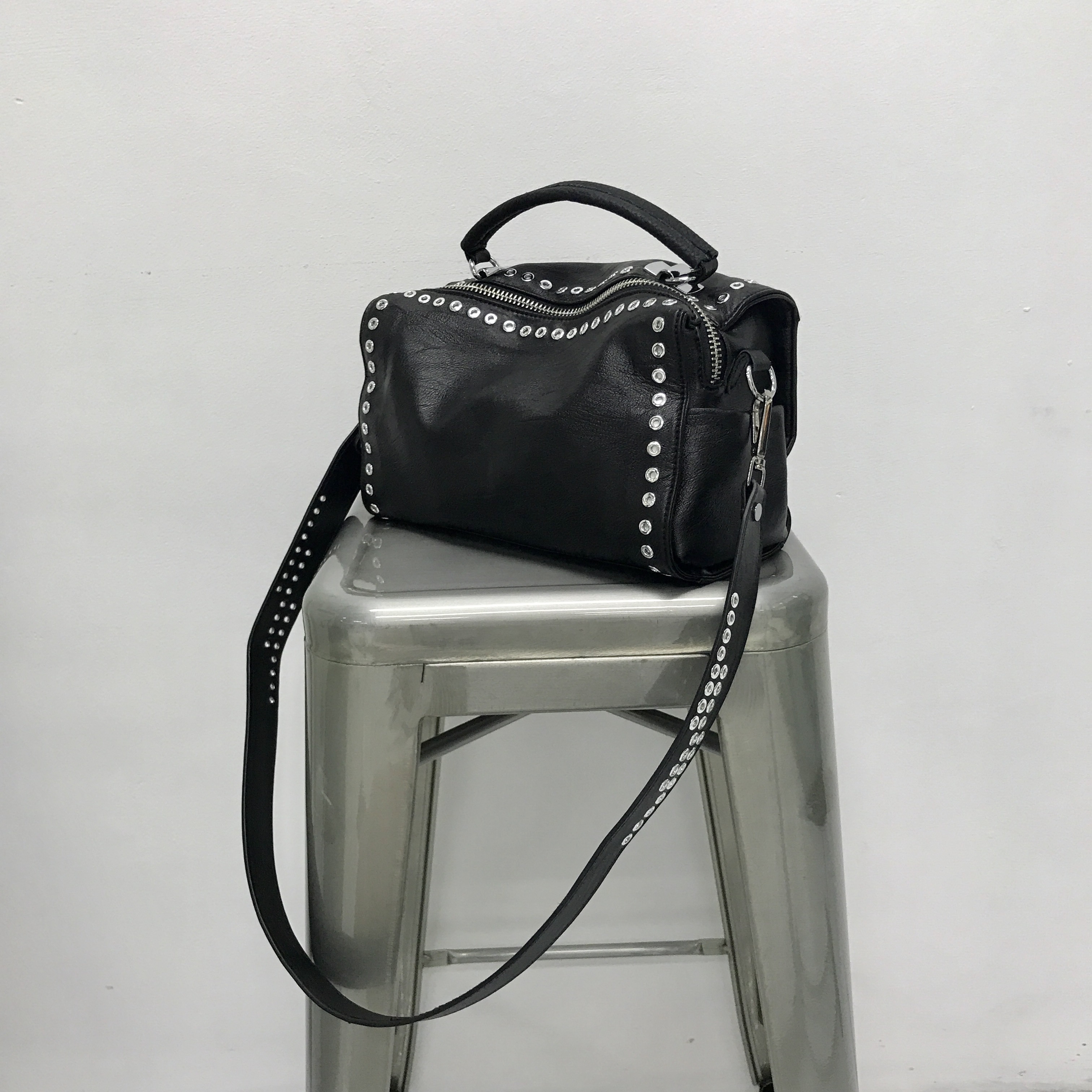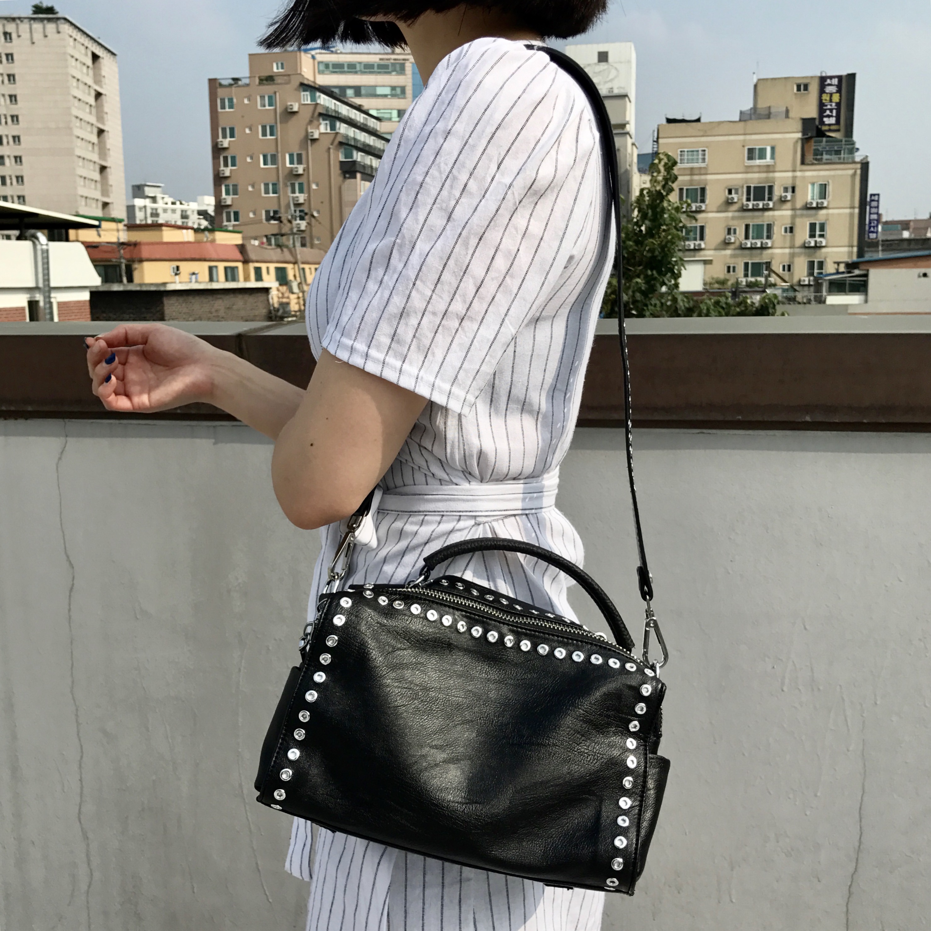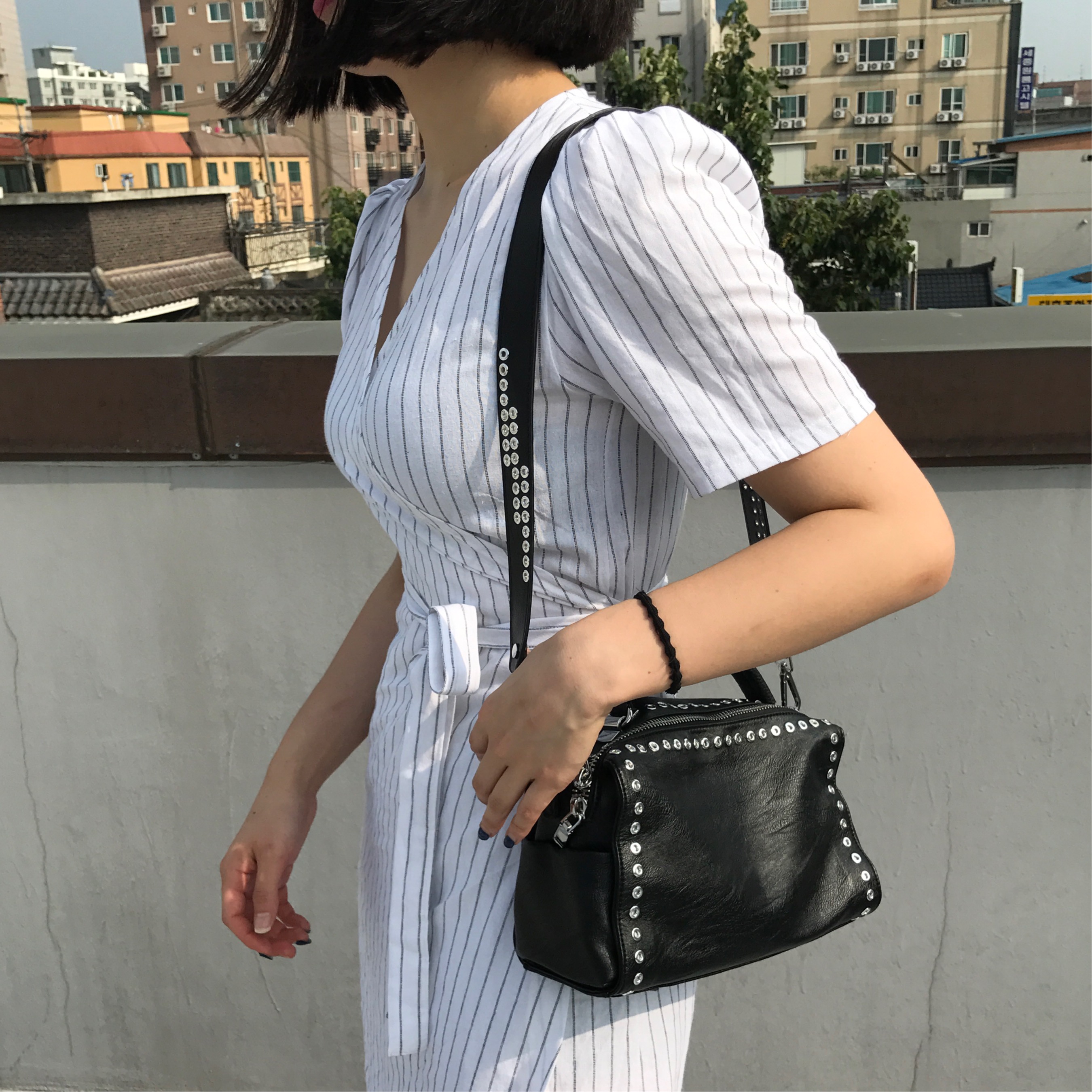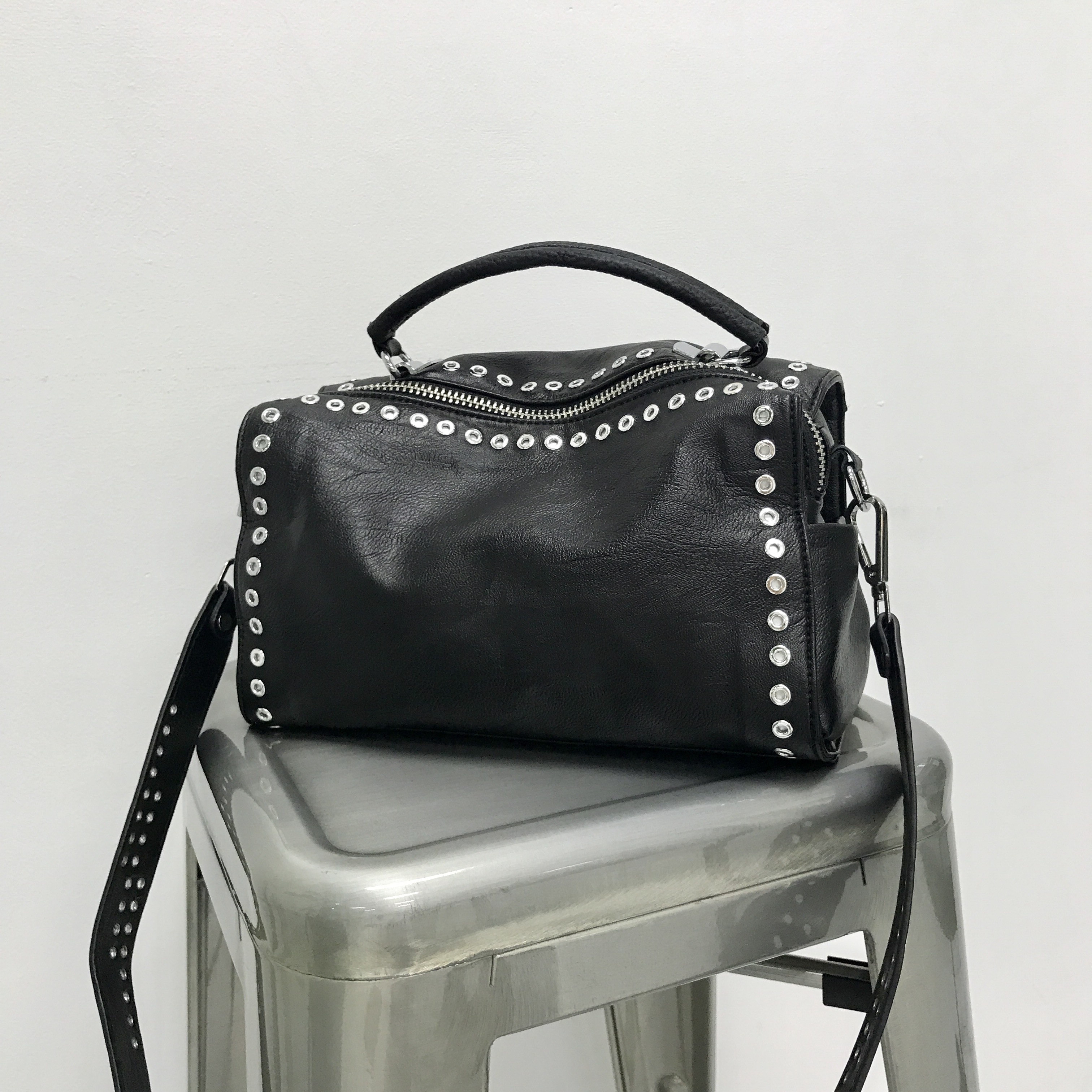 Punching Stud Cross Bags Bags Black Tote Bags Square