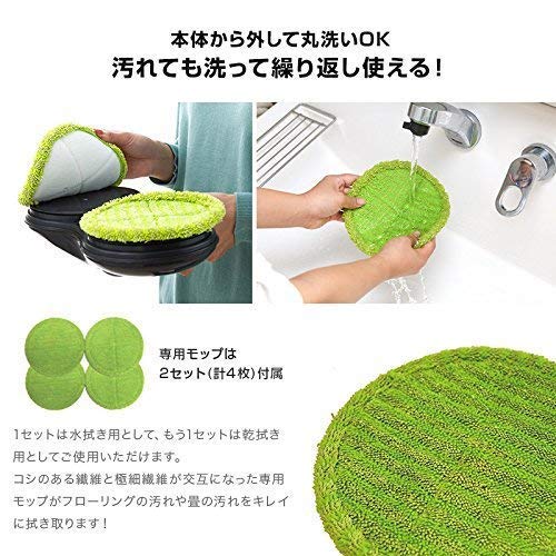 2つのモップが1分間に約80回転し、 床の汚れを専用モップでしっかりキャッチ。