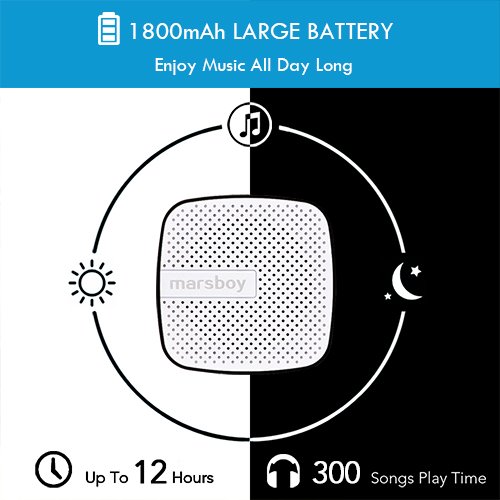 UP TO 12 HOURS/300 SONGS PLAY TIME - We customized a super powered 1800mAh build-in battery for this portable Bluetooth speaker. It allows the tiny Bluetooth speaker to play 12hr/300 songs continuously, 3 times than the other Bluetooth speakers.