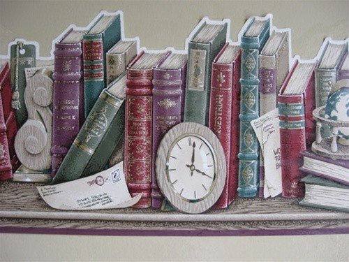 -. Title : Taupe Scalloped Books Wallpaper Border 102312 HO