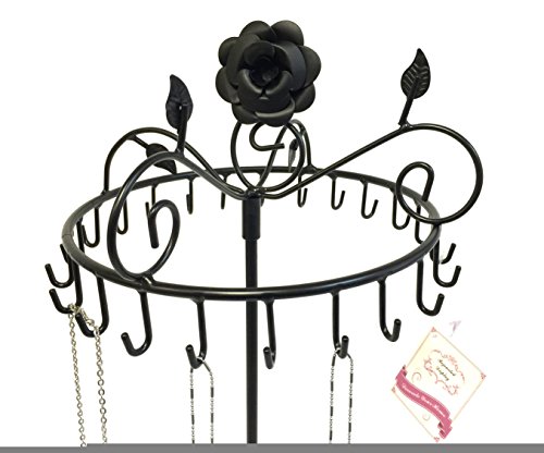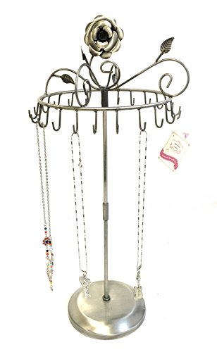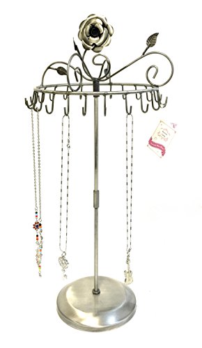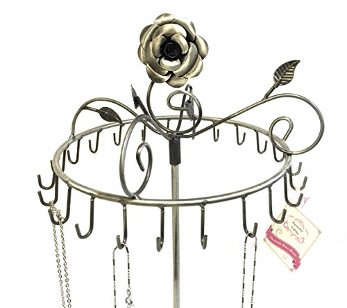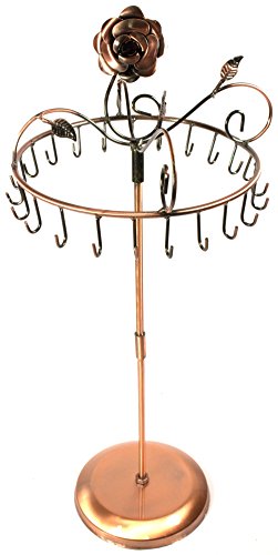 -. Binding : Home -. Brand : Bejeweled Display -. Department : womens -. Feature : This is a new rose on top rotating necklace stand w/ bottom weighted Manufactured by Bejeweled Display® / Overall Dimension: 9"D X 17" H / Color: Black, antique silver or copper / Holds 23 necklaces or bracelets / Individually Packed in a sealed bag by Bejeweled Display® -. Label : Bejeweled Display -. Manufacturer : Bejeweled Display -. ProductGroup : Home -. ProductTypeName : HOME -. Publisher : Bejeweled Display -. Studio : Bejeweled Display -. Title : Bejeweled Display® Rose on Top 17" H Rotating Necklace Holder ~ Necklace Organizer~ Jewelry Display