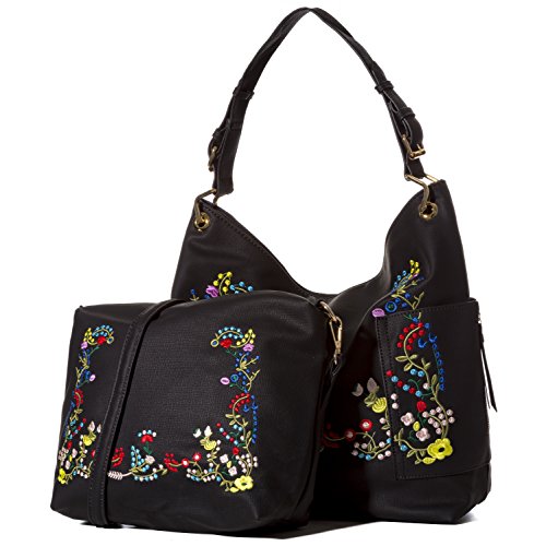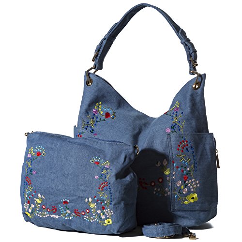 -. Title : Handbag Republic Cute Hobo Purse Flower Embroidered Zipper Bag Pouch Crossbody Bag Set For Women Ladies