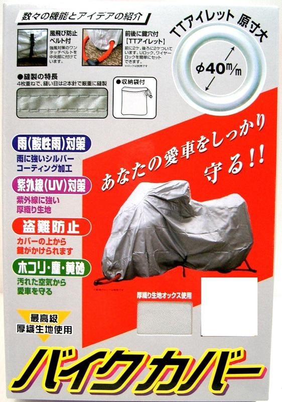| 強風対策のワンタッチベルトを中央部に付けています。前後各2ヶ所に鍵穴があり、Uロック、ワイヤーロックを簡単にセットできます。様々な対策のアイデアを取り入れたバイクカバーです!! |