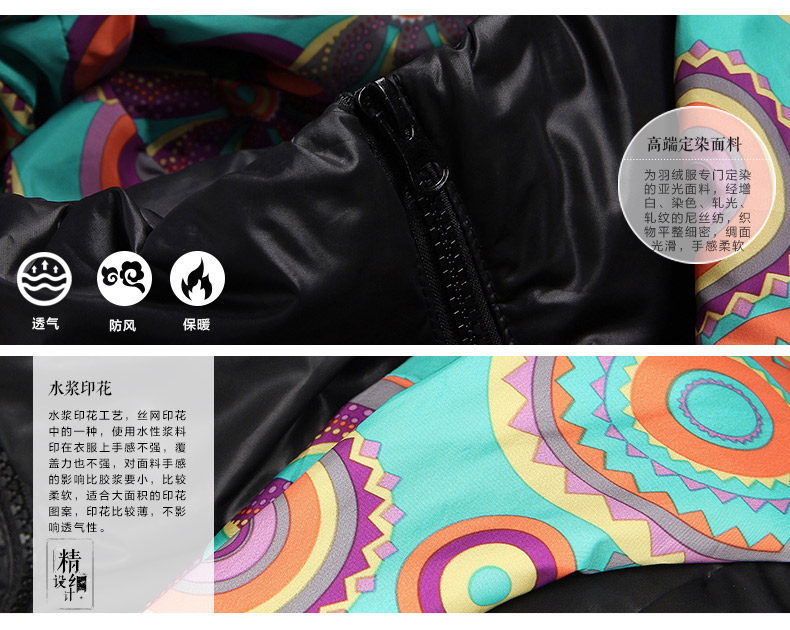 在这个张扬自我的年代,人们喜欢被赋予个性、时尚、刺激、独树一帜等各种标签,那么在寒冷的冬天怎么能少的了一款别致的羽绒服呢! 立领连帽设计,保证了温暖度,时尚的印花拼接,充满大牌风尚,在帽檐袖口袋口的相互呼应,及富层次感,多色的设计,随心挑选,让你在灰蒙蒙的人群中,更加独特耀眼。