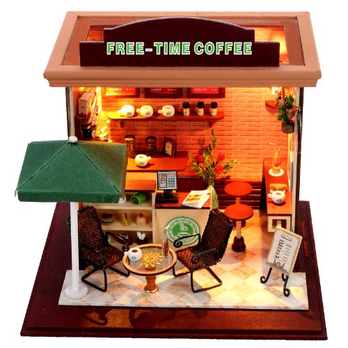 -. Title : Wood Dollhouse Miniature Kit DIY Doll House With Furniture Toy Artwork Gift--Free Time Coffee
