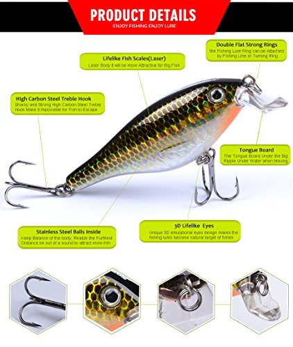 -. Feature : GREAT MUST-HAVE ITEM FOR ANGLERS - Widely Targeting At Predator Fishes Such As Catfish, Perch, Bass, Redfish, Trout, Bream, Muskie,Roach, Walleye etc For Both Freshwater and Saltwater. Well-packed And Gift-wrap available - Perfect Gifts For Birthday, Anniversary, Thanksgiving, Christmas etc. / WELL-DESIGNED AND WELL-MADE - 3D Life like Fish Eyes With Fish-Attracting Laser P.R.Inted Body Provides Excellent Appearance Of Fishing Lures. While Double Flat Strong Rings And Carbon Steel Treble Hooks Offers Continuous Metal Flash and Special Vibration To Attract Fishes. Stainless Steel BBs Inside Lures' Chamber To Keep Balance and Casting Long. / ECO-FRIENDLY MATERIAL - With High Performance ABS Material, Which Offers Odor-free and Reusable Fishing Lures, Proberos Fishing Lures Are Unmatched in QUALITY and DURABILITY. / MULTI-COLOR AVAILABLE - Gives You Option Of Fishing In Any Water Area Or For Different Targets. / ***THE MOST IMPORTANT THING*** - Wish You Good Luck In Your Fishing Trip! GOD BLESS YOU! Proberos promise we 100% Stand Behind Our Products.