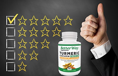 -. Feature : Up to 200% MORE STANDARDIZED CURCUMIN Extract. BetterWay Supplements offer you 350 mg Pure Organic Turmeric for the digestive system plus 150mg Turmeric Extract Curcumin standardized to 95%, as an antioxidant and anti-inflammatory, in each capsule of our Tumeric supplements. This is between 50% and 200% more Curcumin Extract than most others. READ ON TO SEE IF THIS IS RIGHT FOR YOU / KNOW YOUR ONIONS BEFORE YOU BUY TURMERIC CURCUMIN SUPPLEMENTS. Read the label carefully. Whatever the total weight of each Turmeric capsule it will have Turmeric powder, with or without Bioperine Piperine Black Pepper Extract for greater absorption. In this simple state the Tumeric supplement will benefit the digestive system and will have mild anti-inflammatory and antioxidant properties / TOP NOTCH TURMERIC PILLS have Organic Turmeric plus the Turmeric Extract Curcumin which is the active ingredient in Turmeric Curcumin Supplements and normally standardized to 95% making it more potent as an antioxidant and anti-inflammatory supplement, especially when combined with Bioperine Piperine Black Pepper Extract. Most brands include 50mg or 100 mg of Curcumin extract in their Tumeric supplements / SMOKE AND MIRRORS This is where the fun starts. Turmeric Curcumin Supplements come in capsules and the greater part of the weight of these turmeric capsules is the plain turmeric powder. Some will give over 1000mg and claim they are stronger, but it is the Curcumin extract which gives strength to these Tumeric supplements. Read carefully and decide the true strength and WHAT IS BEST FOR YOU / 100% MONEY BACK GUARANTEE as with all products by BetterWay Supplements. Your trust in us and Turmeric Curcumin capsules and to be your partner in your health goals is something we value beyond measure. Please feel free to contact us at any time about these Tumeric supplements or any other product