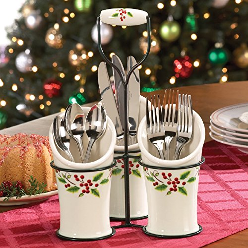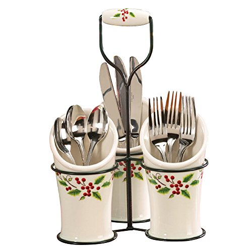 Studio : Collections Etc Publisher : Collections Etc Binding : Kitchen Product Description Holly Christmas Utensil Holder Description Holly Utensil Holder: Keep all your flatware neatly organized and easily accessible. Three stoneware holders feature a pretty holly design and nestle nicely in a wire rack with coordinating ceramic handle made for carrying. Carrier measures 8 3/4"L x 7 1/2"W x 12 1/4"H. Material Type: Ceramic No Risk Purchase, Hassle-Free Returns - 100% Satisfaction Guaranteed With customer satisfaction as our number one priority, we proudly offer a Satisfaction Guarantee for all of our merchandise and services. From our appealing merchandise and incredible values, to our friendly customer service, we strive to provide a positive shopping experience by meeting or exceeding your expectations.If you are not completely satisfied within 60 days of your purchase (see return policy for details).