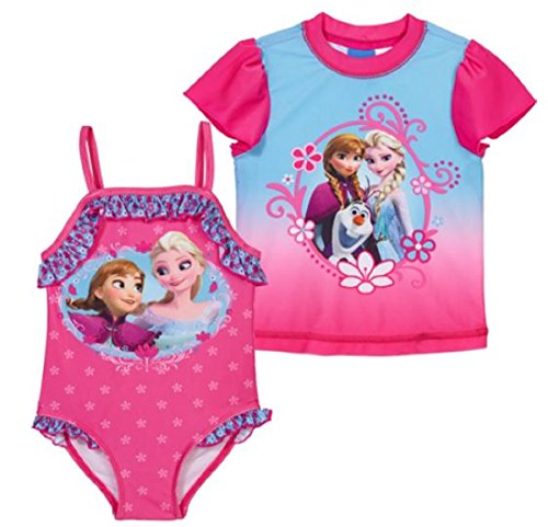 2-Piece swim set includes UPF 50+ one-piece swimsuit with a matching rash-guard shirt