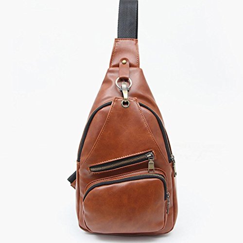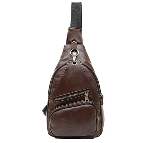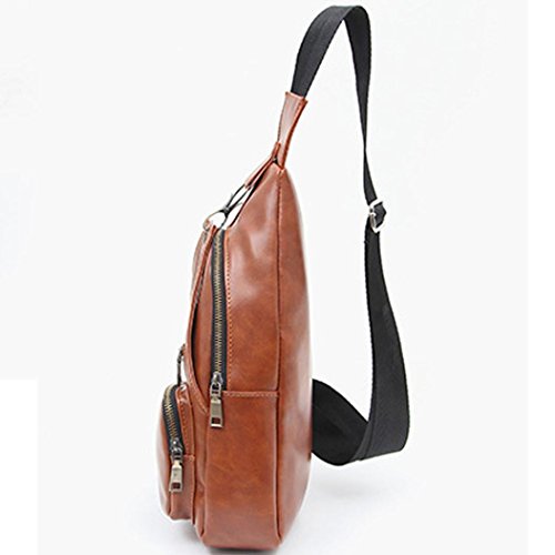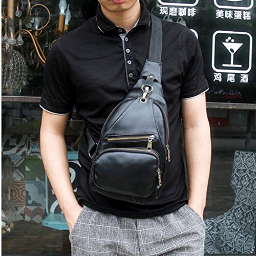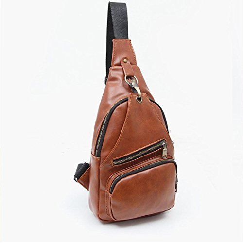 -. Title : AMA(TM) Men's Cool Leather Chest Bag Sling Hiking Satchel Small Bagpack