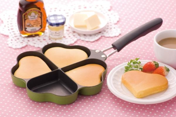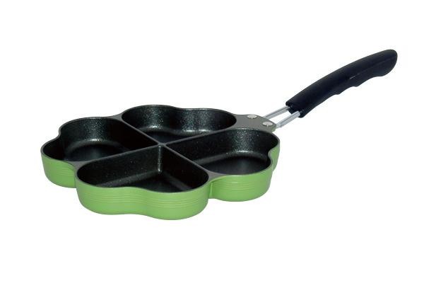 | ハート型の仕切りで使いやすい四つ葉のクローバー型フライパン。 |