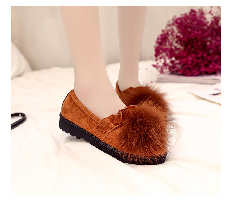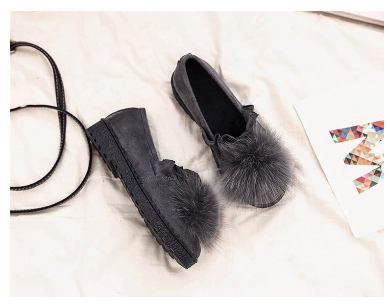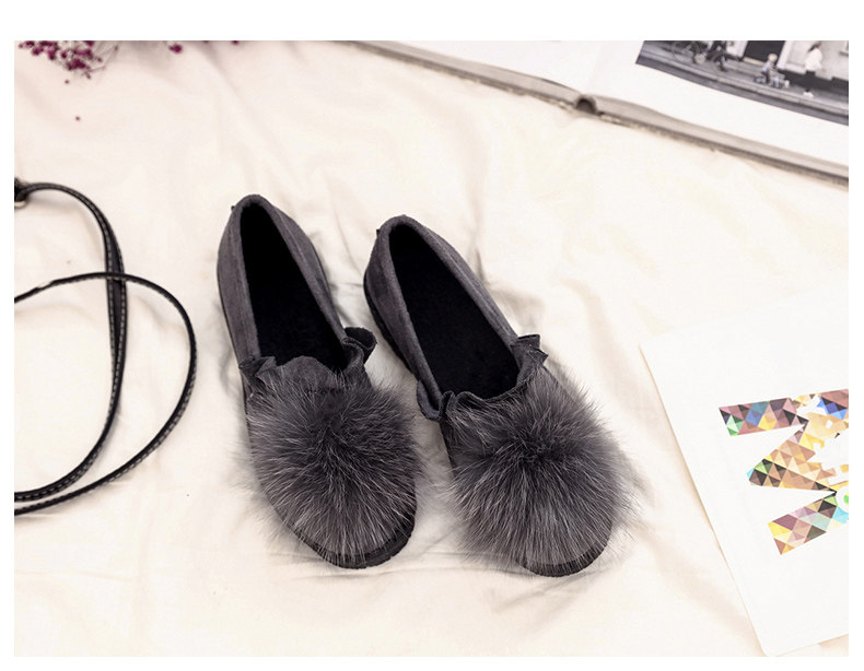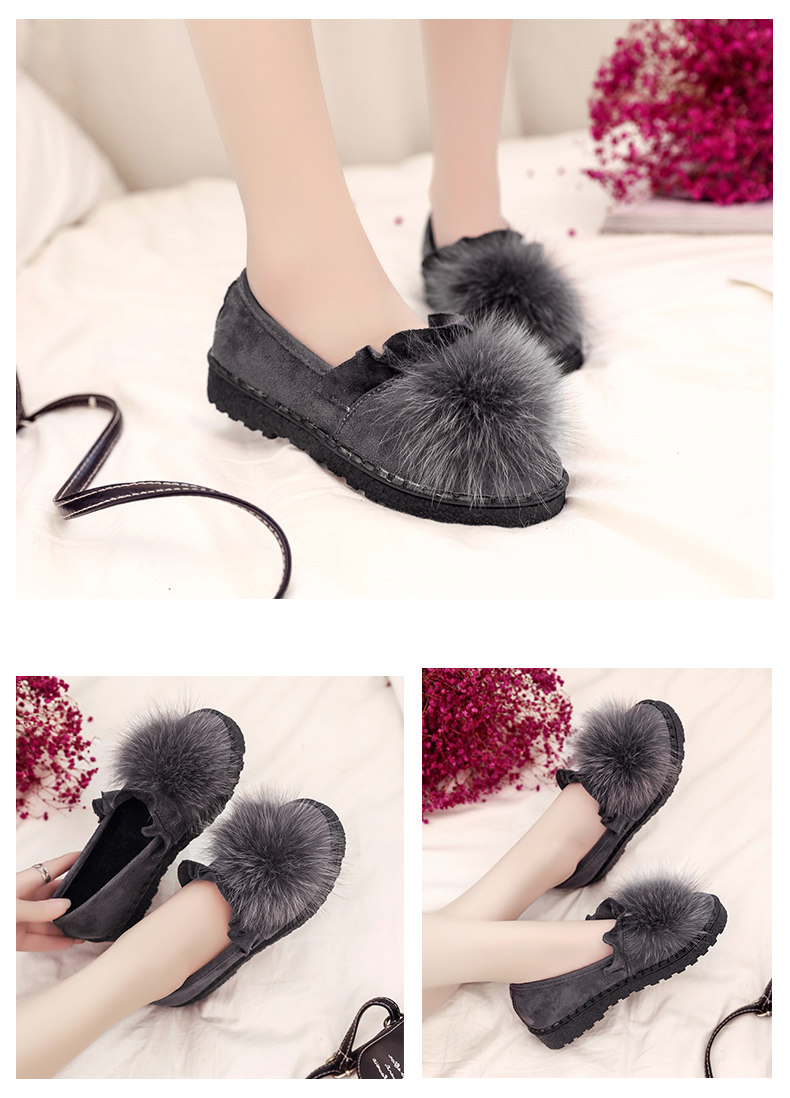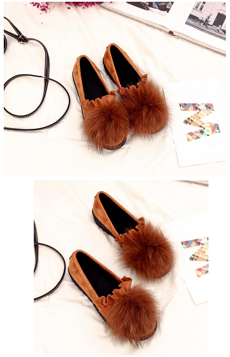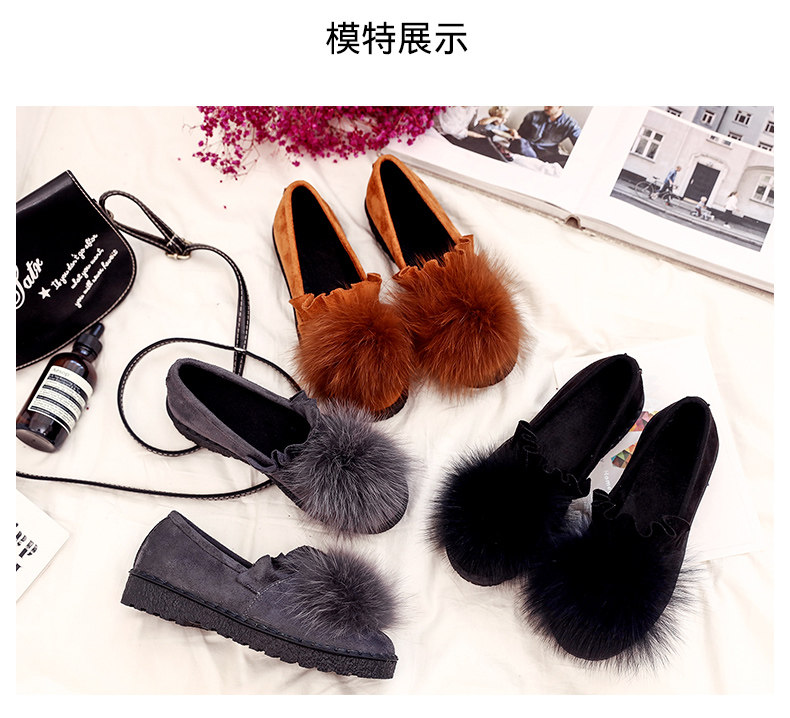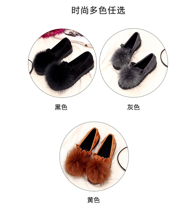 韩版平底毛毛球单鞋女秋季新款低跟船鞋学生简约休闲女鞋子
