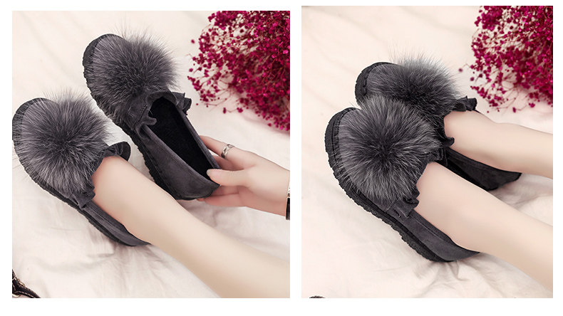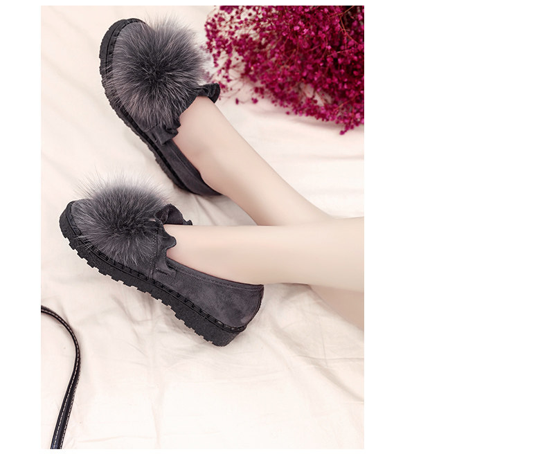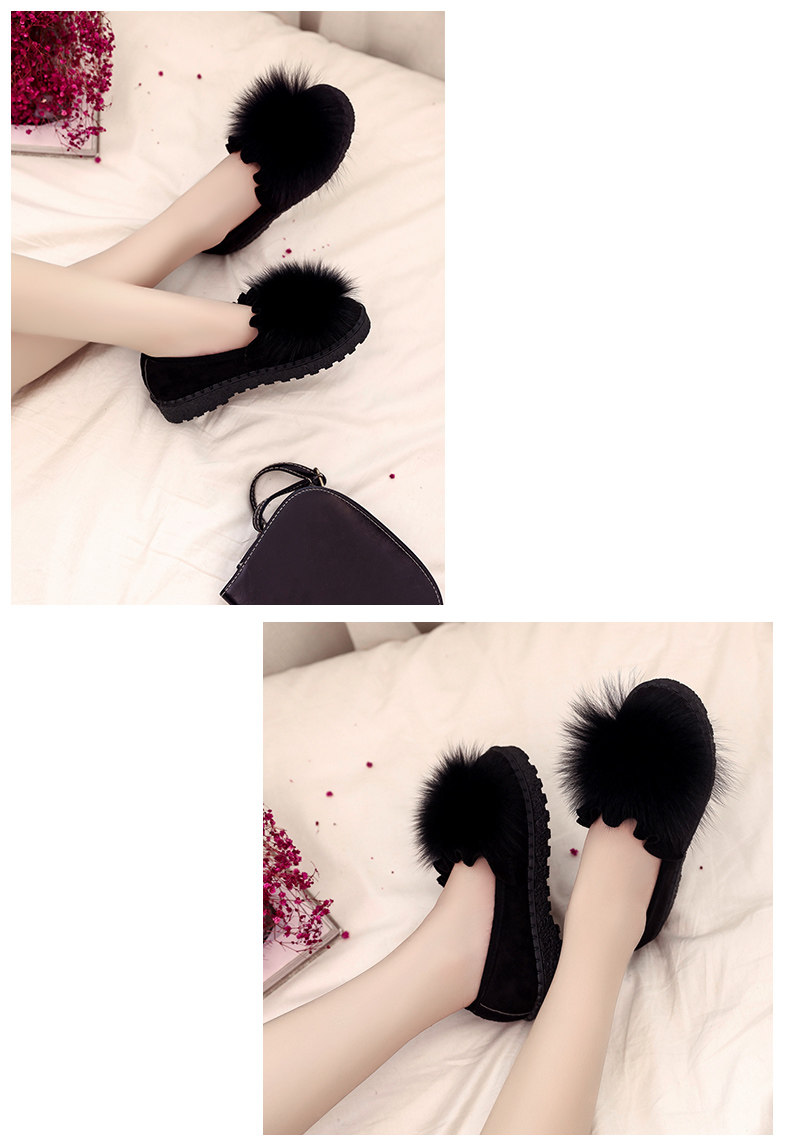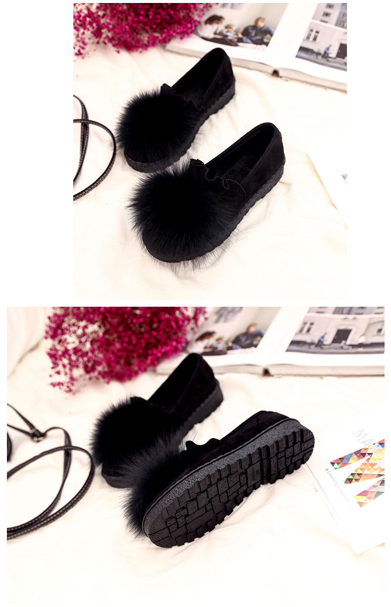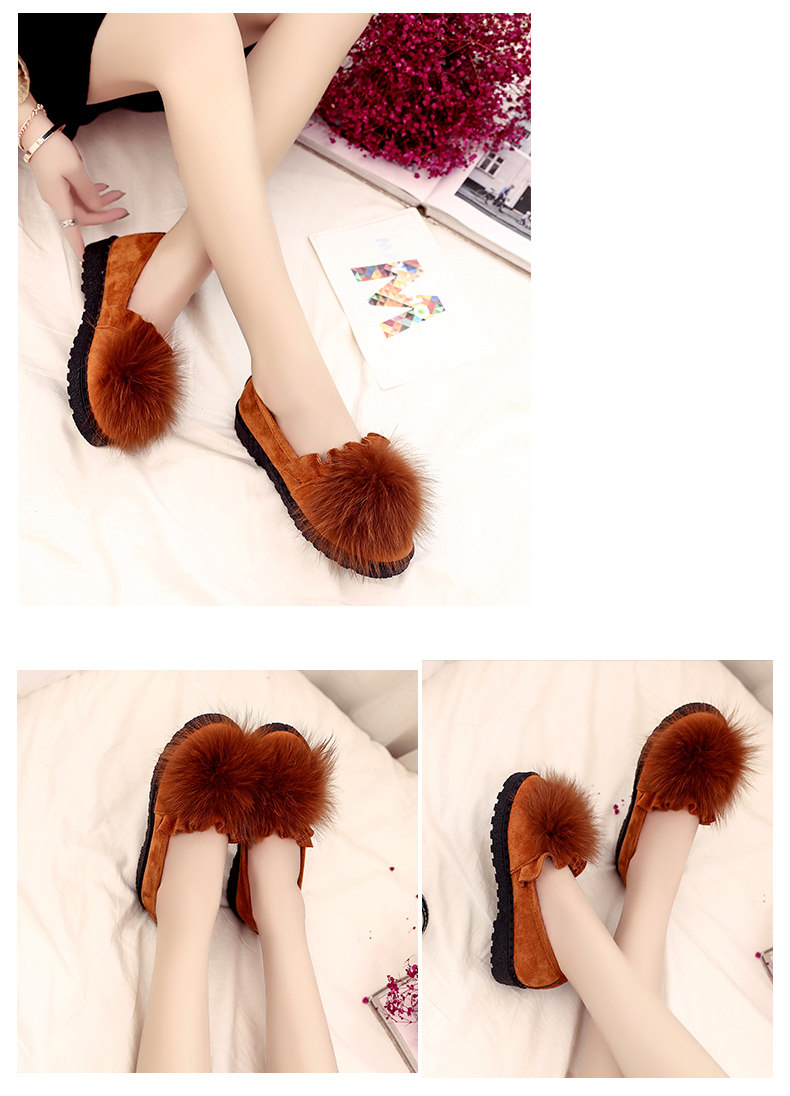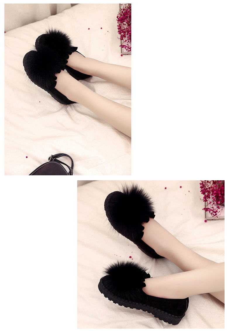 韩版平底毛毛球单鞋女秋季新款低跟船鞋学生简约休闲女鞋子