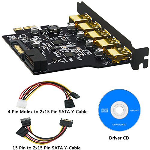 Mailiya PCI-E to USB 3.0 5-Port PCI Express Expansion Card and 15-Pin Power Connector, Mini PCI-E USB 3.0 Hub Controller Adapter with Internal 20-Pin Connector - Expand Another Two USB 3.0 Ports