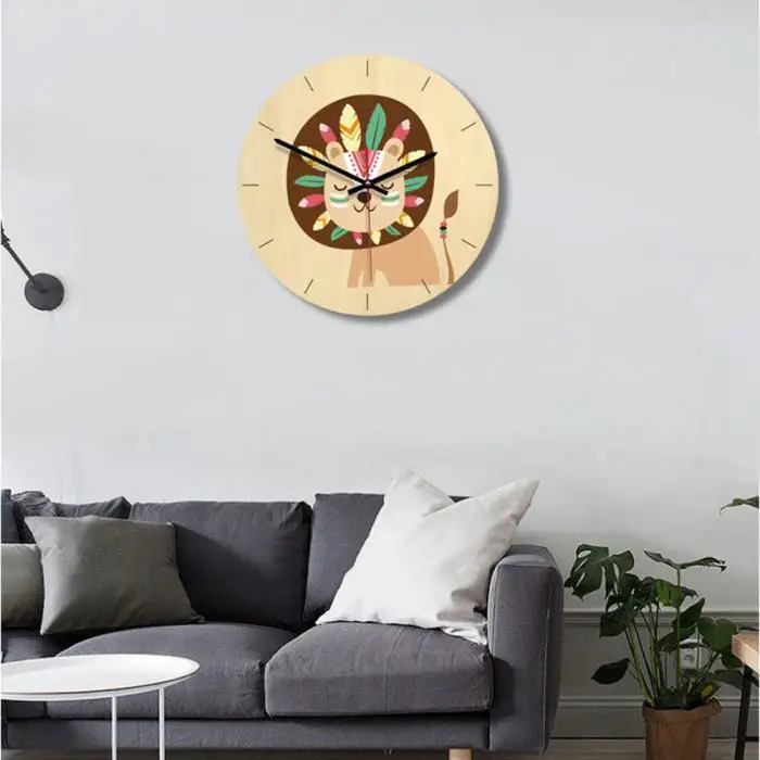 Wooden Wall Clock Cartoon Animal Printed Home Decoration Round Silent Clocks for Living Room Office 2018ing