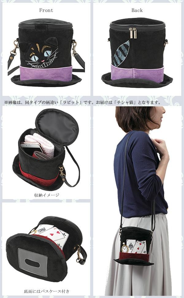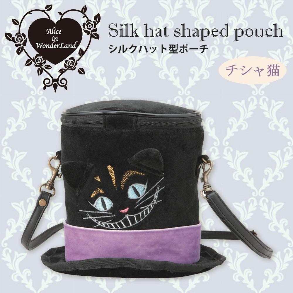 | 凝った刺繍がおしゃれなシルクハット型ポーチ。帽子の底にはパスケースが付いているので肩にかけたままタッチすることができます。ケータイやコインケース、ハンカチなどがすっぽり入るサイズです。 |