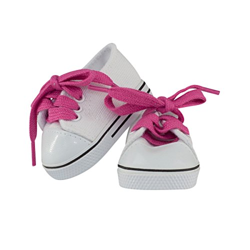 -. Feature : Delightful White Tennis Shoes / White Canvas with White Imitation Leather Toe Cap / Pink Shoe Laces / Fits 18 inch dolls such as American Girl, Madame Alexander, Our Generation, My Life As, etc. / Not affiliated with American Girl®